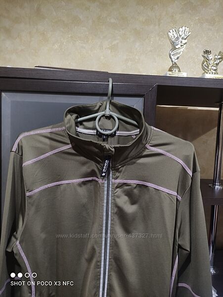 Спортивная кофта, отличного качества. Хорошо тянется, размер указан Л. Подойдёт на наш 46-48размерЗамерыШирина между подмышки 51