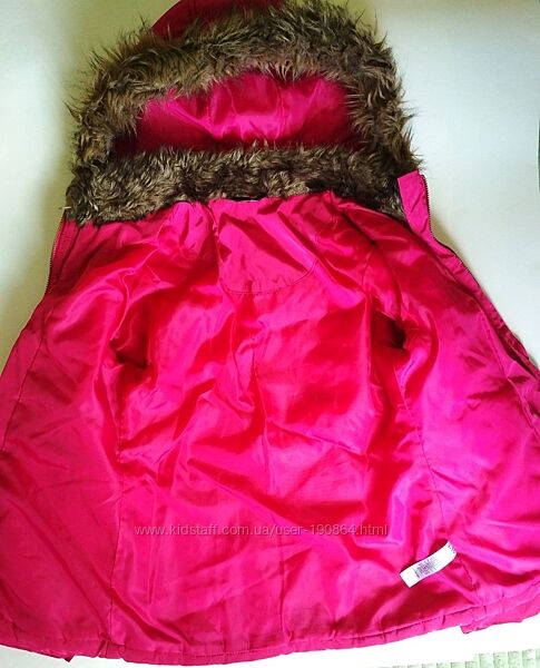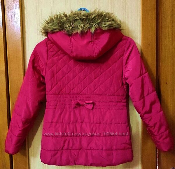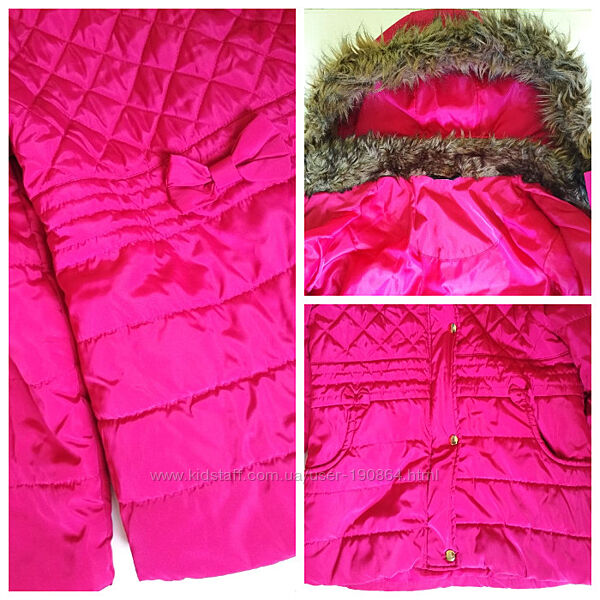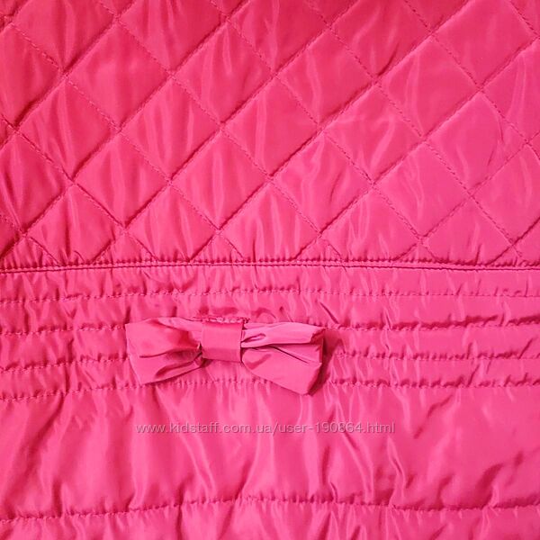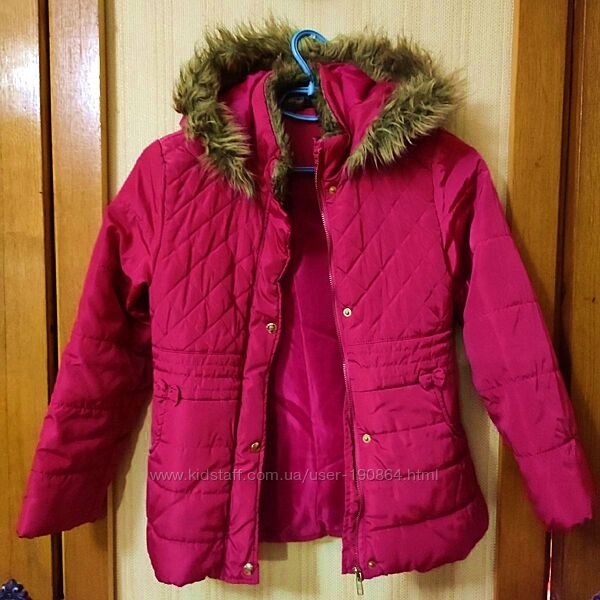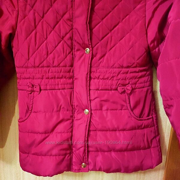Малинова стьобана курточка George. Розмір вказаний 134-140см (9-10 років). Стан дуже добрий, без дефектів.Довж 55, ПОГ 39, Рукав 50 від плеча (38,5 під рукою), Шир в плечах 34. Верх 100% поліестер, підкладка 100% поліестер, наповнювач - тонкий прошарок синтепону.