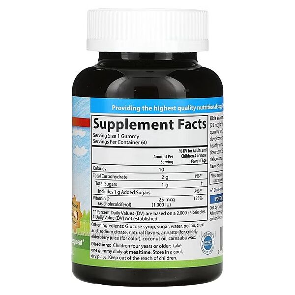 Жевательные мармеладки с витамином D3 содержат 1000 МЕ витамина D3 в каждой, что способствует здоровью зубов, костей и мышц; нормальной функции иммунной и сердечно-сосудистой системы; а также усвоению кальция. Каждый флакон содержит ассорти из вкусных жевательных мармеладок со вкусом клубники, лимона и апельсина. Жевательные мармеладки с витамином D3 — это способ без хлопот получать витамин D каждый день.
