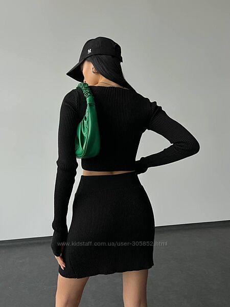 Подробное описание: Костюм-двойка мини юбка и кроп-топ серый, чёрный, розовый, молоко