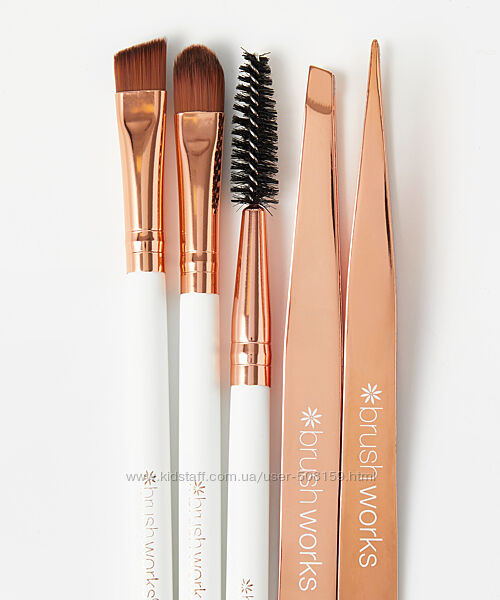 Купувала в Британії!Brushworks luxury brow set розкішний набір для брів Brushworks включає всі інструменти, необхідні для догляду, очищення, доповнення, визначення і надання форми вашим бровам. Два кінцеві пінцети Brushworks дозволяють повністю контролювати стан брів, це повинно бути частиною звичайного режиму для підтримки краси. Пінцети виготовлені з високоякісної нержавіючої сталі ручної роботи, що забезпечує ідеальну точність та ефективність. Ви можете швидко та легко формувати свої брови за допомогою кутового похилого пінцета та точно вищипувати їх за допомогою високоточного пінцету. Похила пензель для брів та пензель для розтушовування. Ця міцна кутова кисть дозволяє точно і рівномірно нанести гель або пудру на брову, щоб доповнити, надати їй форми та визначити контури. Цей пензель також можна використовувати з гелевими або кремовими продуктами, щоб окреслити верхню та нижню лінії вій. Пензлик для розтушовування ідеально підходить для завершення макіяжу очей або розтушовування тонального крему та пудри зі спеціальними ефектами навколо очей та брів. Її також можна використовувати, щоб м´яко пом´якшити різкі лінії навколо очей чи брів. Гребінець та щіточка для догляду встановлюють та завершують форму вій. Їх також можна використовувати для поділу та підготовки брів перед вищипуванням.