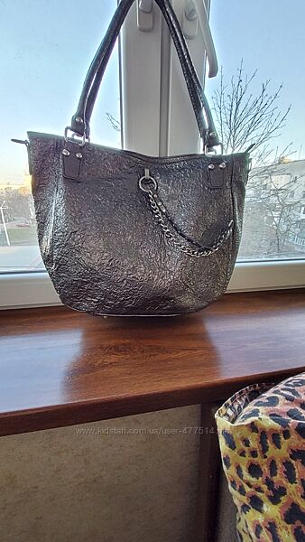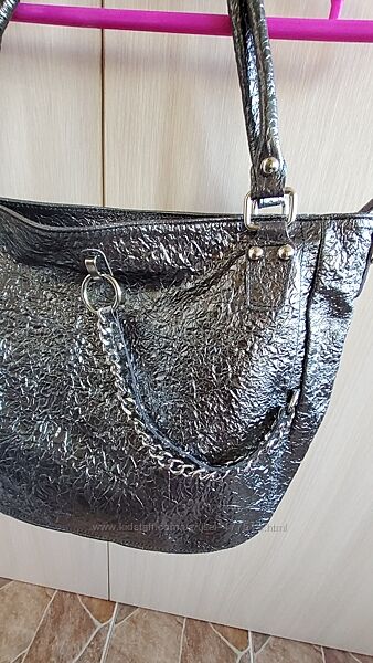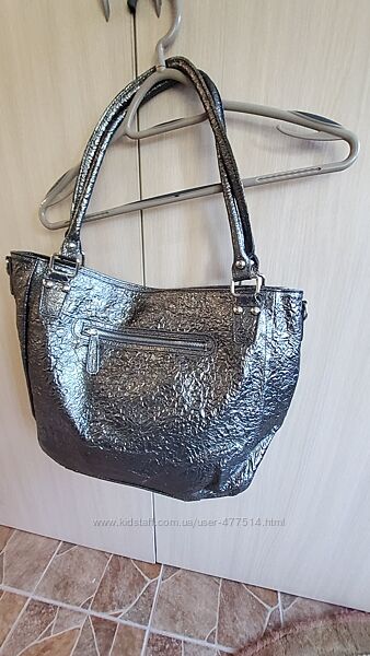Поклонники больших сумок, не упустите! Хорошая, вместительная сумка, производство Италия. Прекрасное качество, модный стальной цвет, цена снижена! Размер 40х30х10, длина ручек 60см.
