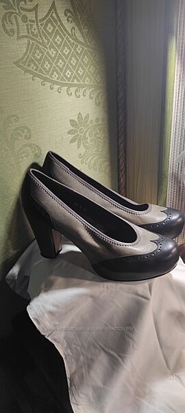 Комбинированные туфельки на каблуке ,цвет- черный с хаки. Высота каблука сзади-10 см, спереди-2 см ( идет скрытая платформа ). Красивые элегантные туфли в отличном состоянии.Другие объявления продавца