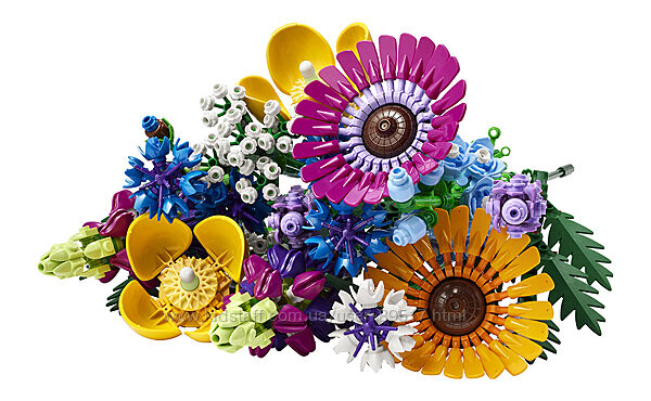 До найдрібнішого кубика створений з вигадливих деталей LEGO, букет польових квітів містить вісім видів польових квітів на стеблах, що регулюються. Початківці флористи та шанувальники квітів можуть годинами збирати і впізнавати квіти, натхненні волошками, лавандою, валлійськими маками, бугливим лісом, папоротею, маргариткою, дельфінієм та вовками. Як тільки LEGO квіти будуть зібрані, їх можна поставити в улюблену вазу, щоб вони стали привабливою окрасою будинку, і сіятимуть насіння радості незалежно від кімнати, чий інтер´єр вона доповнює.