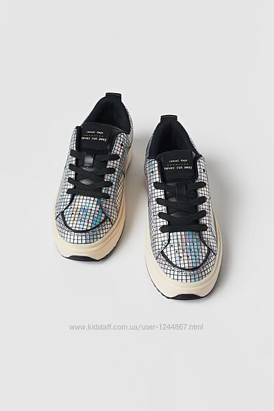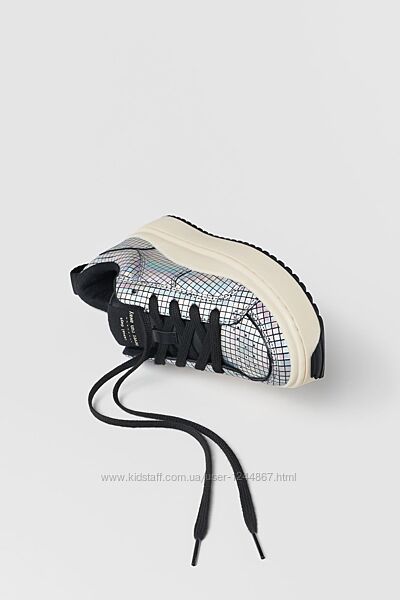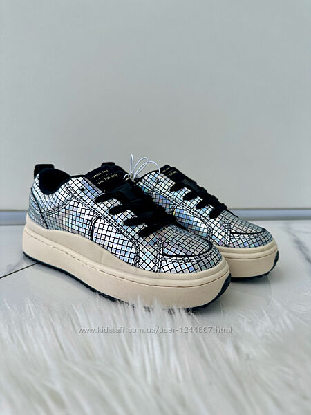Переливчасті кеди з контрастними шнурками та товстою підошвою.Петелька для полегшення взування ззаду.