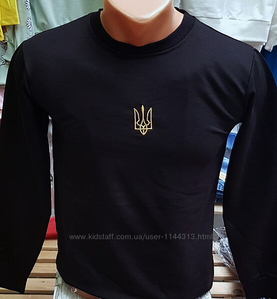 Реглан з флісом на хлопчика з гербом України приблизно на зріст від 128 до 152. Реглан з турецького трикотажу, фліс середньої щільності. Герб вишитий. Низ виробу та рукавів на манжеті. Склад тканини: 95% бавовна, 5% поліестер. Виробник: Туреччина.(більші розміри в цьому оголошені: https://www.kidstaff.com.ua/tema-33302475.html )
