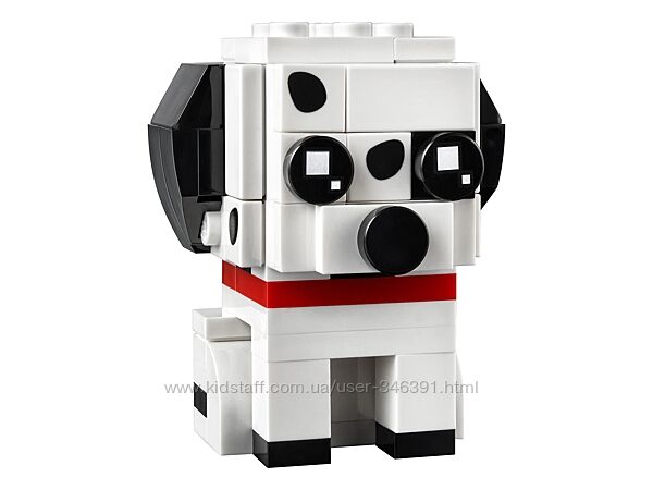 Коллекционный набор для сборки из серии LEGO® BrickHeadz™ состоит из забавных моделей далматинца и щенка, которые вместе сидят в корзине.