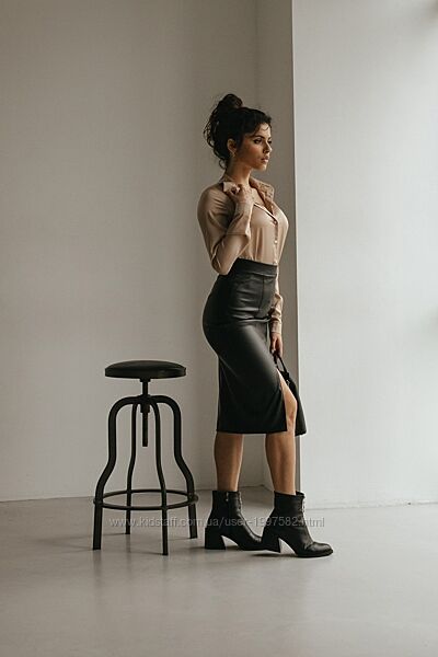 Подробное описание: Спідниця олівець з високою талією з еко-шкіри з розрізом міді шкіряна чорна