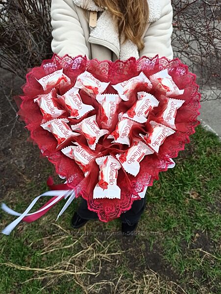 Ручная работаЭлегантный букет с конфетами Рафаэлло подойдёт как подарок на все случаи жизни, 8 марта, день рождения, просто для настроения. Девушкам и женщинам любого возраста.