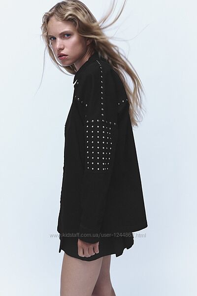 Подробное описание: Джинсова куртка-сорочка Zara із заклепками XS, S, M