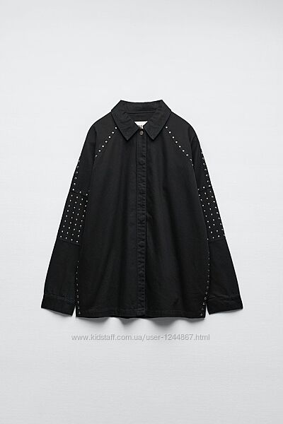 ZW ZARA WOMAN DENIMКуртка оверсайз із заклепками, сорочковим коміром і довгими рукавами.