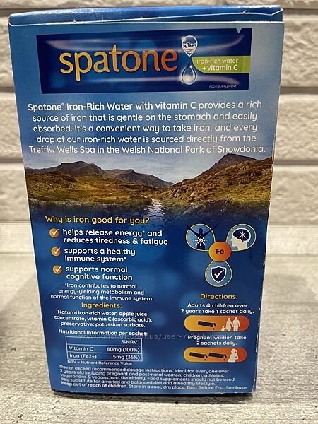 Spatone Apple сочетает 100% натуральную богатую железом воду, полученную с гор Сноудонии, с великолепным яблочным вкусом и добавлением витамина С. Spatone упакован в один порционный пакетик, который можно легко положить в карман или сумочку. Благодаря этому Spatone является удобной доступной добавкой железа, идеальной для использования, когда вы в пути!Состав: 100% натуральная вода, богатая железом, яблочный концентрат (100% натуральный источник), витамин С (аскорбиновая кислота), консервант, сорбат калия