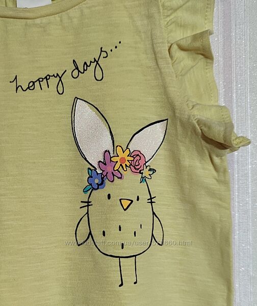 Подробное описание: Жовта футболка Next з пасхальним кроликом р. 3-4 роки