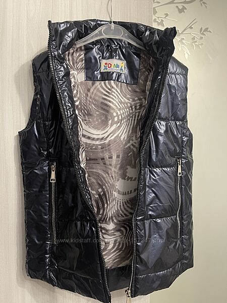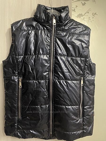 Продам демисезонную жилетку для девочки. Размер - 146 см. Производитель: Украина (тм "Дана"). Капюшон отстегивается. Материал верха: плащевка. Состав верха: 100% полиэстер. Состав подкладки: 100% полиэстер. Наполнитель: силиконизированное волокно 150. Жилет в идеальном состоянии, практически новый. Замеры: ширина плеч - 38 см, длина - 57 см, полуобхват груди - 46,5 см.