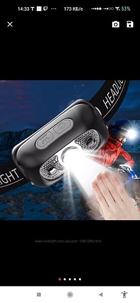 Подробное описание: Фонарь налобный аккумуляторный. Батарея 14500.