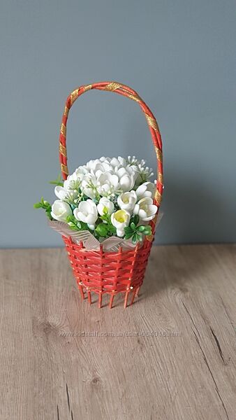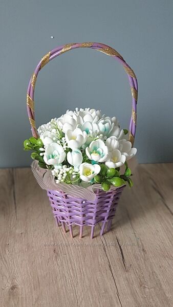 Подробное описание: композиция с крокусами в корзинке, цветы из мыла