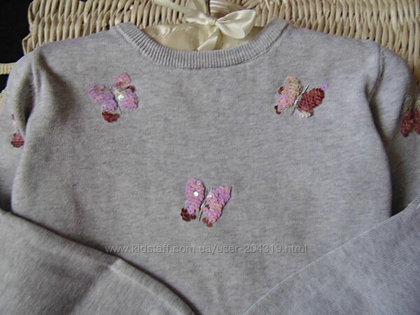 Нежный удлинённый джемпер в бабочки из реверсных пайеток Primark на 7-8 лет,рост 122-128 см