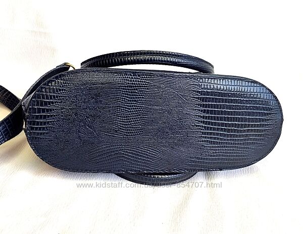 Сумка женская кожаная синяя M&S Marks & SpencerМаленькая, стильная сумочка изготовлена из качественной структурной эко-кожи темно-синего цвета. Основное отделение на молнии, внутри карман для мелочей, в комплекте зеркальце.