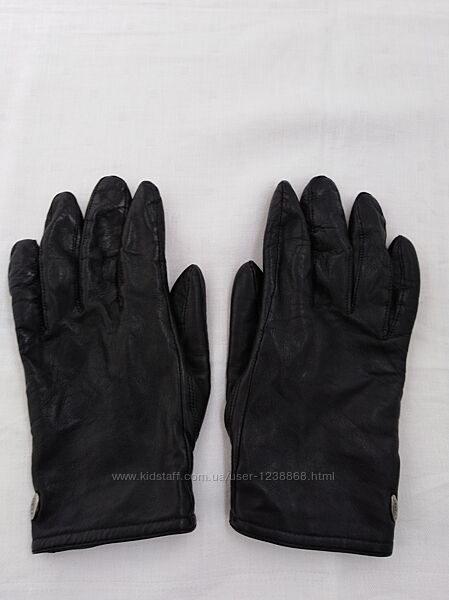 Перчатки из натуральной кожи Esprit.Изготовлены из мягкой натуральной кожи, подклад из трикотажа.Замеры длина среднего пальца 8,5 ширина 9 вся длина 20,5 см.