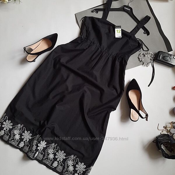 Primark чёрный сарафан с вышивкой р 12 . сток Хлопок