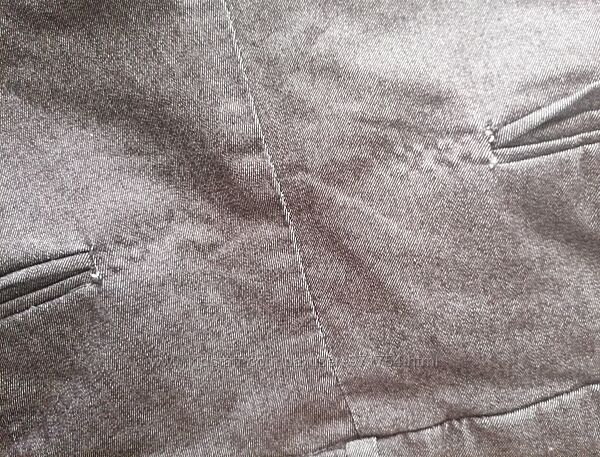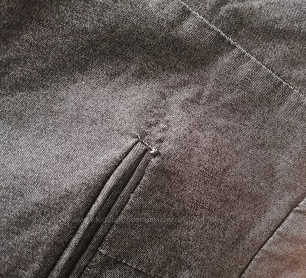 Есть дефекты в области карманов, показала на фото.