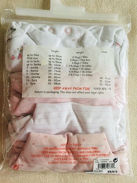 Подробное описание: NEXT набор із 4х милих боді в рожево - білому кольорі. bio cotton в упаковц
