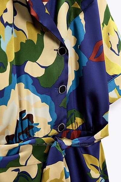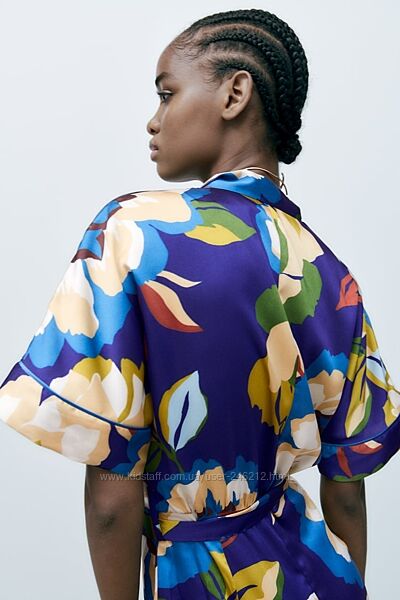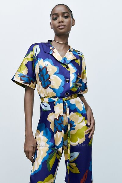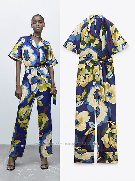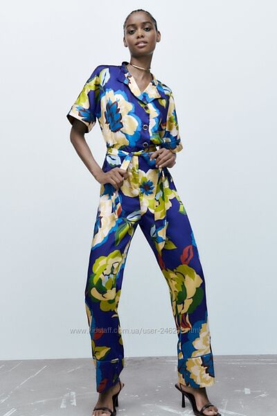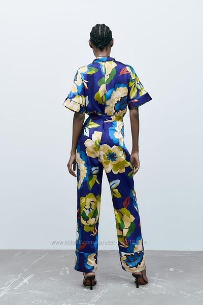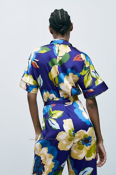 Найкрасивіший атласний комбінезон Zara з останньої колекції.Комбінезон із прямими штанинами, сорочковим коміром і короткими рукавами.