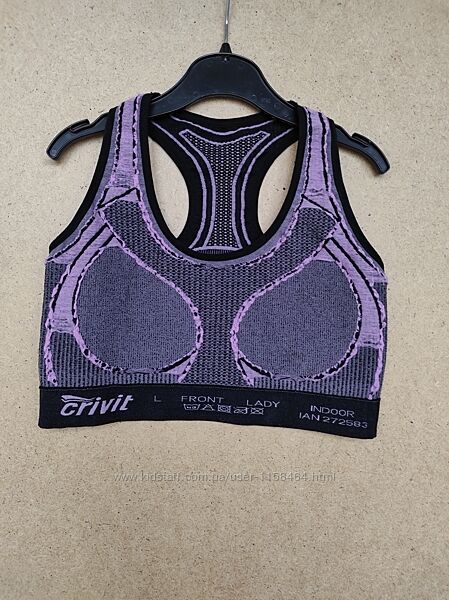бесшовный лиф Crivit (Германия) р.L (маломерит на размер) лучше подойдет на чашку В-С и под грудью 75 - 80смВ идеальном состоянии близко к новому. Без чашечек / паралона