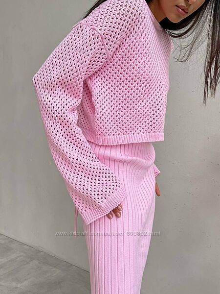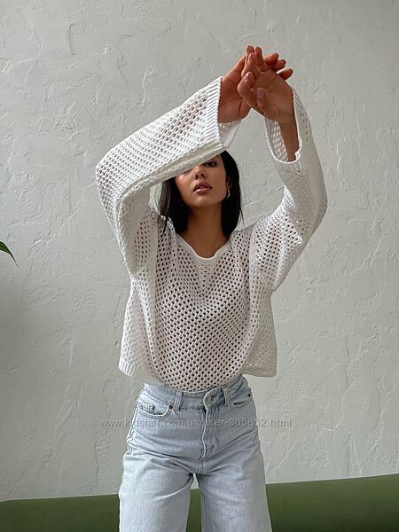 Топ-сітка з довгими рукавами із літньої бавовняної пряжі - просто broken heartВільний фасон, широка горловина. Хочеш додати грайливості - носи зі спущеним плечем🤤