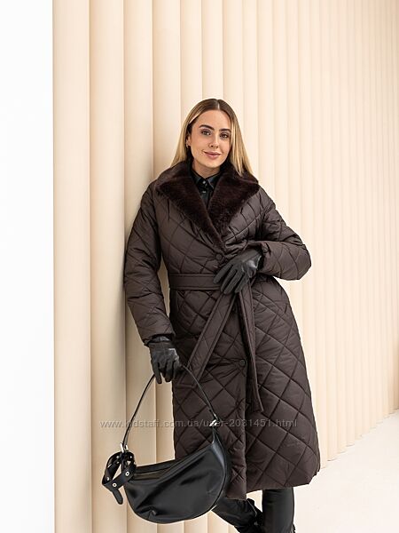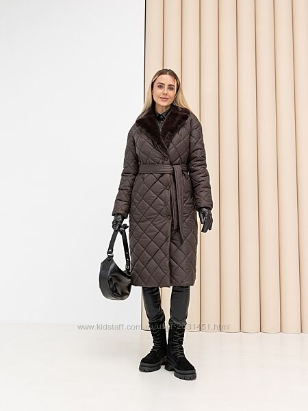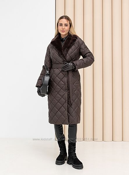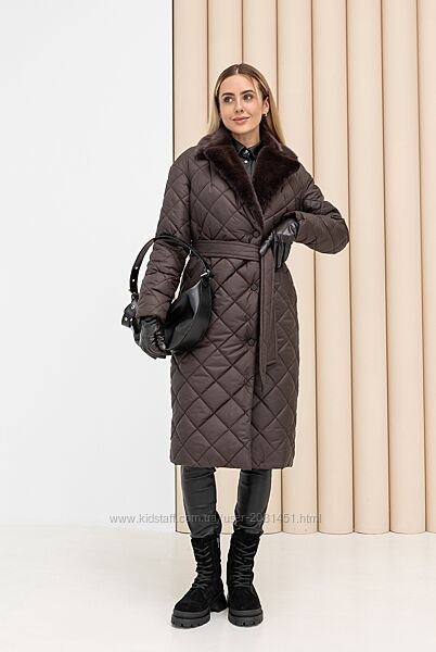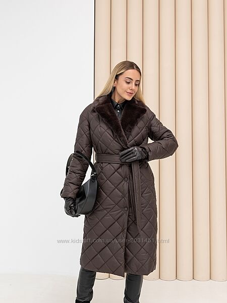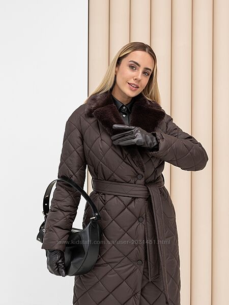 Подробное описание: Пальто женское стеганое утепленное зимнее с меховым воротником, шоколадное