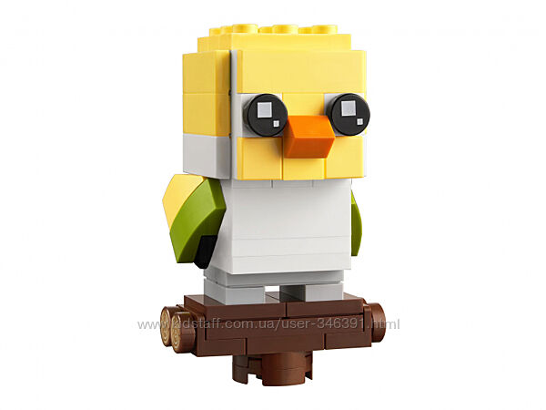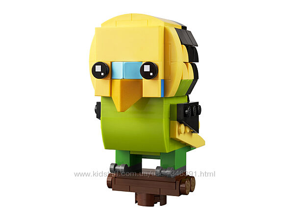 Любителям птицобязательно понравится набор «Волнистый попугайчик» от BrickHeadz™ (40443). Попугай и цыпленок сидят на фирменных подставках BrickHeadz, похожих на жёрдочки для птиц. Подставки крепятся к устойчивой коричневой пластине, которая напоминает дно птичьей клетки. Она украшена двумя наклейками — с перьями и со следами птичьих лап. Этот набор домашних животных станет идеальным подарком для всех детей, коллекционеров BrickHeadz и тех, кто любит птиц.