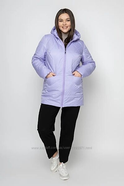 Демісезонна подовжена куртка з капюшоном. Розміри 50-66. Довжина 80 см. Довжина рукава 65 см. Демісезонна подовжена куртка з капюшоном. Прямий силует. Капюшон вшитий. Застібка-блискавка та кнопки, зручні накладні кишені. Жіноча подовжена куртка з капюшоном на весну глибокого кольору лаванда — новинка 2023 року, яка доповнить базовий гардероб сучасних модниць. Класичний прямий крій виробу підкреслює спокусливий силует. Верхній одяг має гармонійний вигляд як з ефектним вбранням, так і одягом у стилі міського шик. Особливості: зносостійкі, практичні виробничі матеріали; оздоблення плащовою тканиною з водовідштовхувальними властивостями; екологічний, гігієнічний силіконовий утеплювач. Модна жіноча куртка не вимагає додаткового догляду. Зберігає форму, м´якість і стійкість кольору навіть після багаторазового прання.