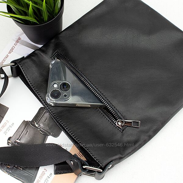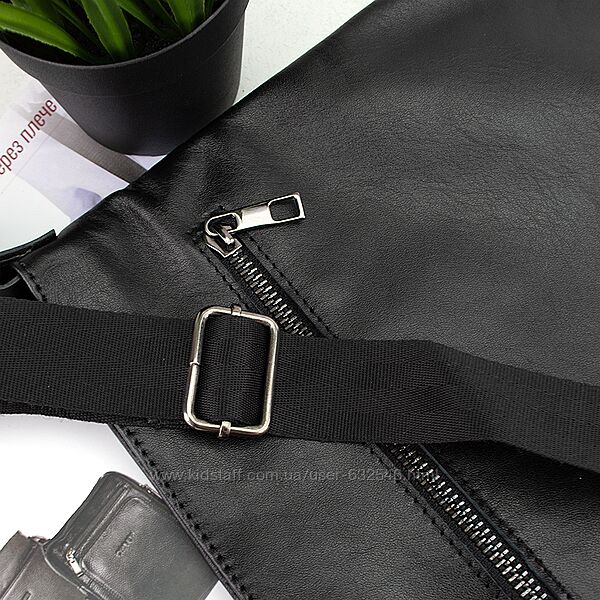 Базова чорна сумка із натуральної гладкої шкіри стане незамінним аксесуаром у повсякденному житті для кожного чоловіка. Якісне пошиття та фурнітура забезпечать її зносостійкість. Сумка виконана у стриманому класичному стилі, без зовнішніх кишень, нашивок та логотипів. На задній стороні сумки - 1 глибока кишеня на блискавці. Сумка має одне основне відділення на блискавці. У ньому – 1 кишеня для телефону або павербанку на блискавці. Також є киненя на молнії на задній стороні сумки. Носиться на плечі чи через плече. Підклад сумки виготовлений з якісного матового чорного текстилю. Ремінь з якісного текстилю, ширина 32 мм, довжина регулюється від 64 до 122 см. У конструкції сумки не використані карабіни та інші деталі. Розміри сумки: висота: 23 см, ширина: 21 см, товщина: 3 см. Країна-виробник - Україна. Продається в подарунковій коробці.