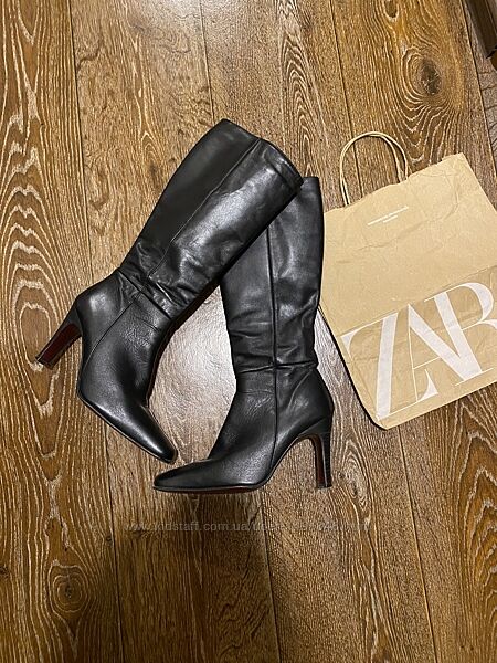 Мега круті стильні чоботи сапожки натуральна шкіра фірми zara