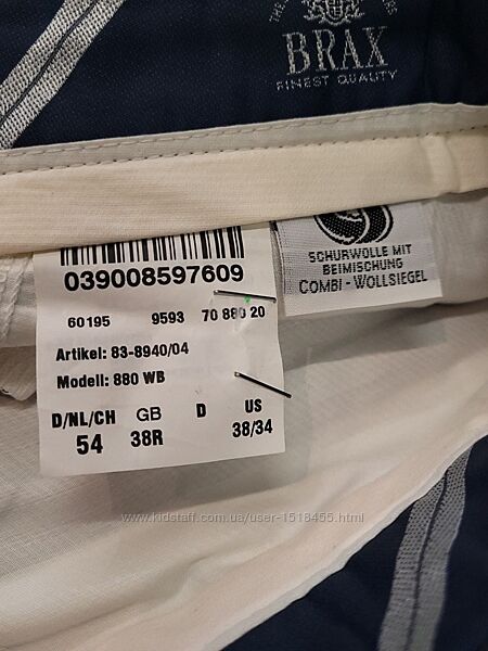Мужские брюки Brax Оригинал. Новые. 100% шерсть. Р. 38 рост. 34Марка принадлежит фирме Leineweber, знаменитая история которой начинается в 1888 году и воплощает историю развития текстильного искусcтва Германии. Собственно бренд BRAX появился в 1950 году, к этому времени компания накопила более чем полувековой опыт производства мужской одежды.