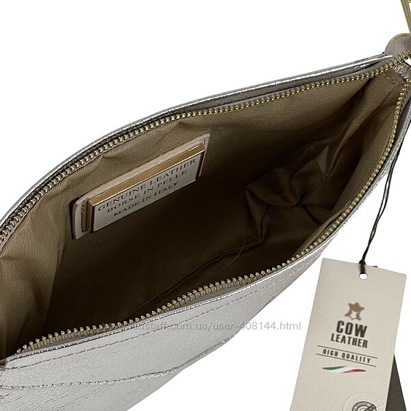 Сумка жіноча шкіряна Genuine Leather 05927 DL1 срібна✔️Матеріал натуральна шкіра зерниста, блискуча