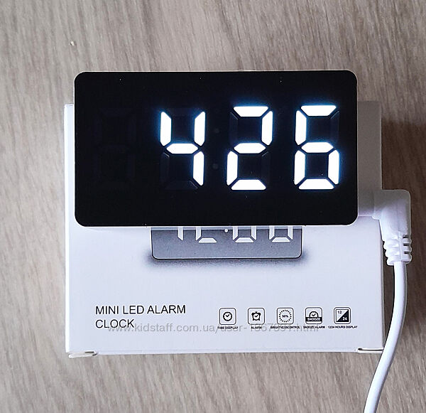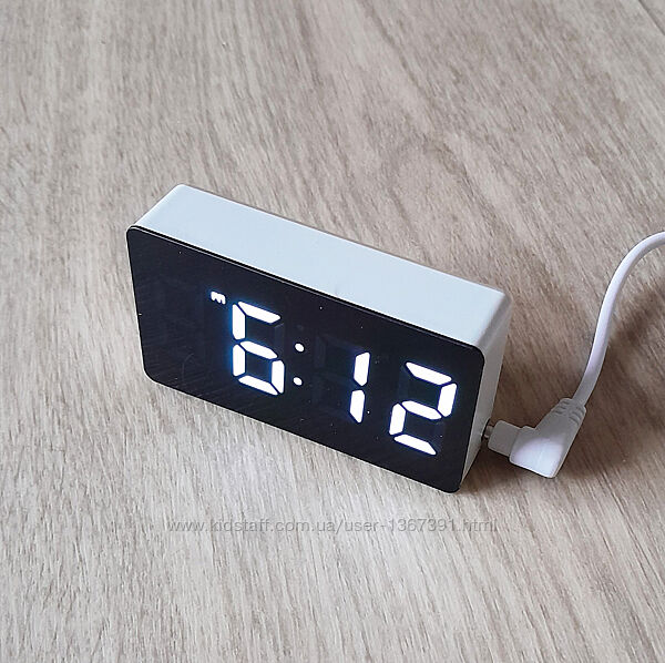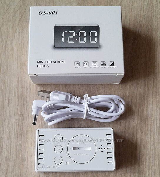 Годинник настільний електронний цифровий. Час, дата, температура. Автоматичне зменшення яскравості світіння у вечірній та нічний час. Живлення: від мережі 220В кабель USB у комплекті, адаптер 5V (від смартфонів та мобільних) у комплект не входить. Батарейка 2032 для пам´яті, у комплекті. Годинний формат 12/24. Розмір: 7 х 4 х 2 см. - 165 грн. Від 2 шт. - по 160 грн. Від 5 шт. - по 148 грн.За бажанням новий мережевий адаптор 2А, в упаковці - 75 грн.