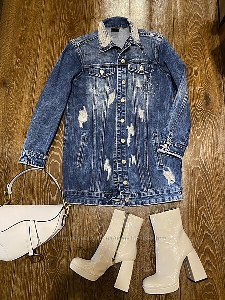 Подробное описание: Крута подовжена джинсова куртка джинсовка з потертостями