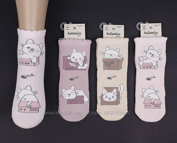 Набор 6 пар. Детские носки с котиками девочке 1-6 лет Katamino . Турция.Набір 6 пар. Дитячі шкарпетки з котиками для дівчинки 1-6 років Katamino. Туреччина.
