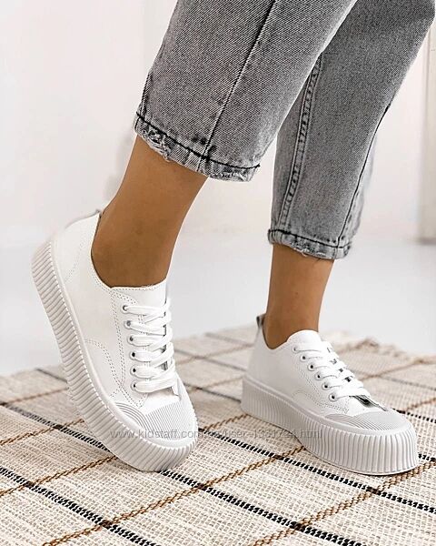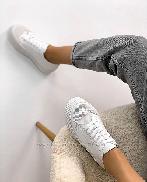 Подробное описание: Кеди білі жіночі екошкіра на потовщеній підошві