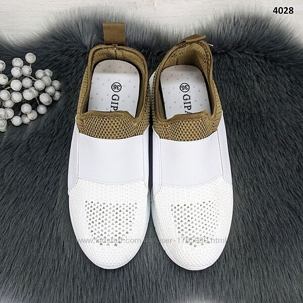 Женские белые текстильные кроссовки мокасины, на объемной подошве. Производитель украинская фабрика GIPANIS.За очень приятную и скромную цену вы получите кроссовки, действительно, очень хорошего качества и современный, модный дизайн. Кроссовки без шнуровки, есть резинка на подъеме. Подошва выполнена из вспененого ПВХ - очень легкая, гибкая, не просаживается при длительном использовании, имеет амортизационные свойства. Благодаря текстильному материалу, нога хорошо проветривается и не парит.
