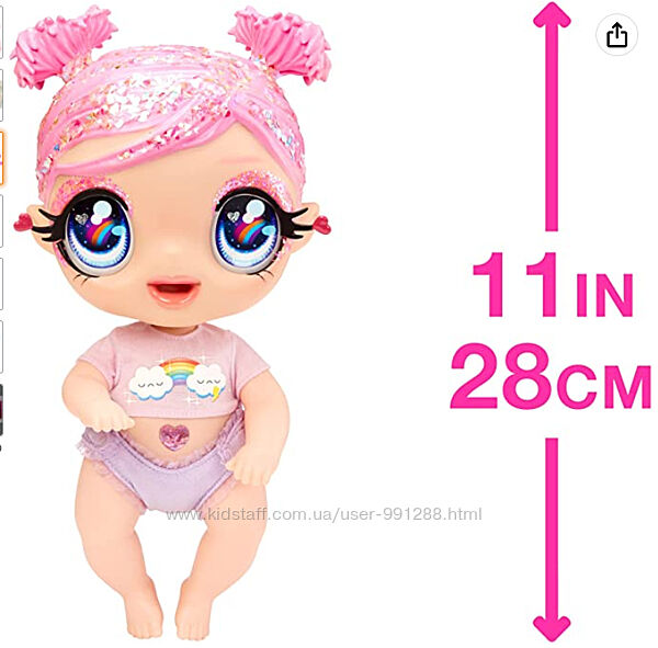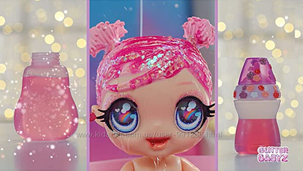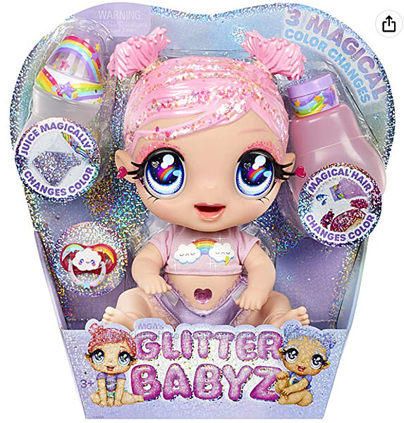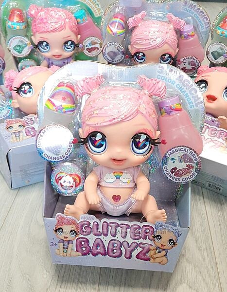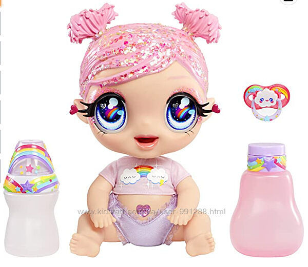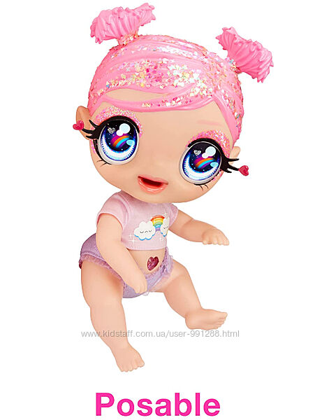 Стежте за блиском у захід сонця, поверніть ліворуч на місяць, і ви відкриєте для себе чарівний світ Glitter Babyz™ від MGA.Glitter Babyz — блискучі, красиві, чарівні малюки з великими гарними очима, блискучими віями та блиском у волоссі.