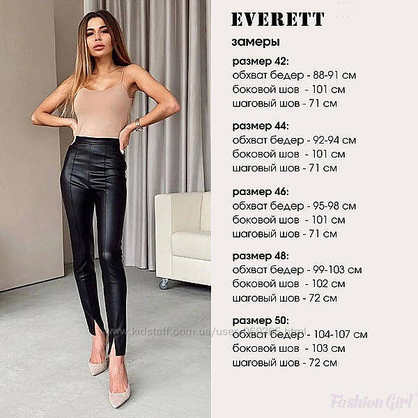 Демісезонні штани пошиті із тонкої екошкіри без утеплювача. Міцний та еластичний матеріал гарно облягає ноги та комфортно відчувається при носінні. Завищена талія та вертикальний декоративний шов візуально витягують силует та подовжують ноги. Додаткова модна деталь, актуальна в сезоні – невеликі розрізи внизу штанин. Вони зроблять образ оригінальнішим і зухвалішим, але не порушать естетику ділового стилю.