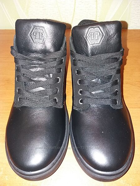 Подробное описание: Ботинки мужские, высокие, демисезонные, кожаные, черные PHILIPP PLEIN.