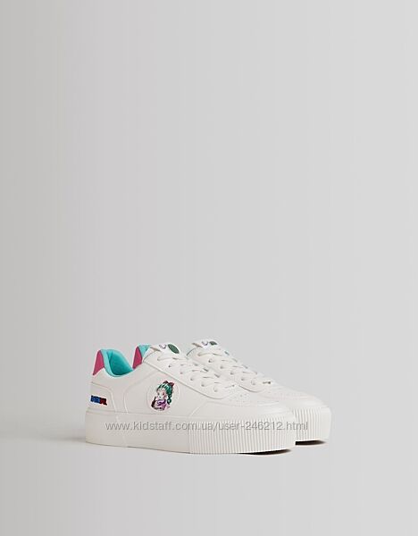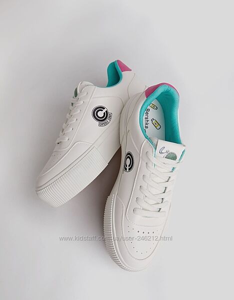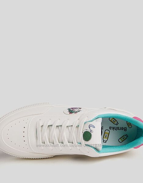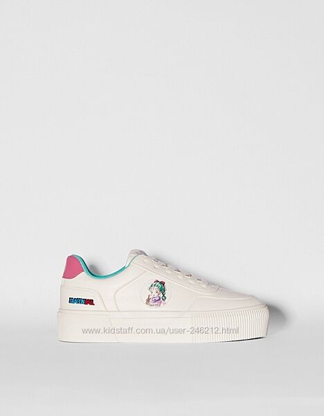 Стильні кеди кросівки на підошві Bershka з останньої колекції!Білі кросівки з контрастними рожевими та зеленими деталями. Нашивка Dragon Ball збоку.