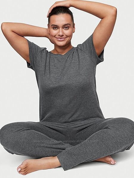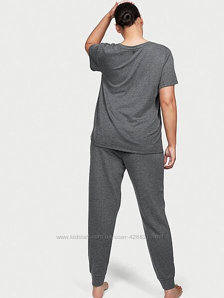 Піжама або домашній костюм Glow Waffle Tee and Jogger Set від Victoria´s Secret з вафельною текстурою, яку вам ніколи не захочеться знімати. Трикотаж м´якенький та приємний до тіла. В комплект входить футболка з короткими рукавами та штани-джогери з куліскою на талії. Склад 62% Polyester, 34% Viscose, 4% Elastane