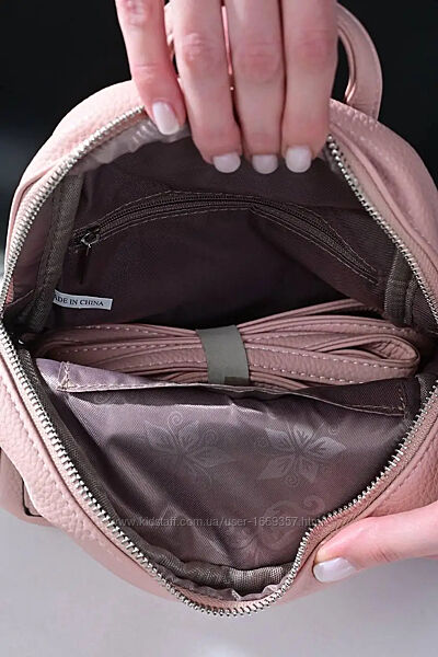 Рюкзак изготовлен из искусственной кожи, застегивается на молниюРюкзак имеет один отдел и 2 кармана, один из которых на молнии