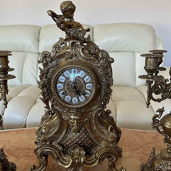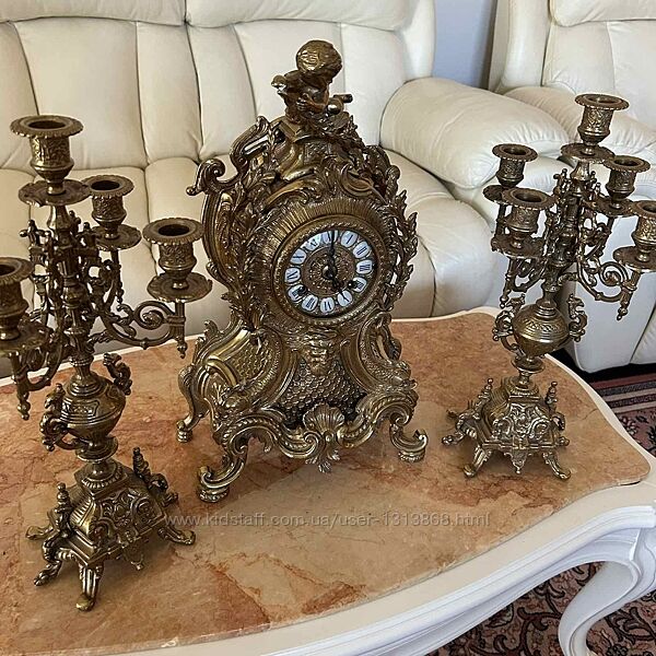 Подробное описание: Бронзовий камінний годинник з канделябрами вінтаж