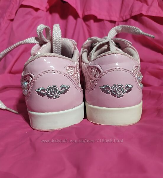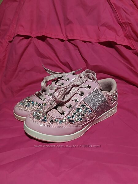 кросівки лаковані модні із стразами рожева пудра для стильної дівчинки