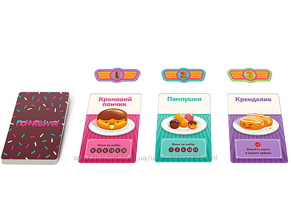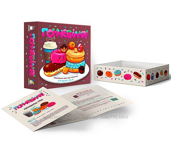 Гра триває кілька раундів. На початку кожного раунду кожен гравець вирішує, яка карта тістечка йому потрібна. Але вибирайте ретельно, бо якщо кілька гравців вирішать поласувати тим самим пончиком, то він не дістанеться нікому. Завершіть гру, набравши найбільше очок, і насолоджуйтеся смаком перемоги!